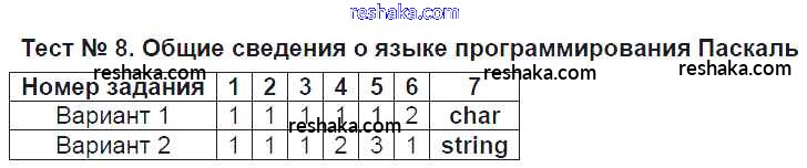 Решака - онлайн ответы Информатика Масленикова за 8 класс Контрольно-измерительные материалы (КИМ) ФГОС 2017 - Тест №8. Общие сведения о языке программирования Паскаль