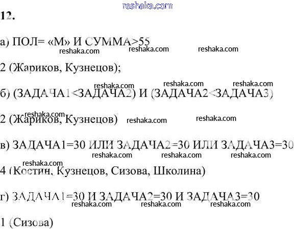 Представляем вам сборники по Информатике, с готовыми ответами к Учебнику Босова школьной программы для учеников девятый класса. Это не просто гдз с ответом, а с подсказками, как верно решить §1.6. Система управления базами данных Глава 1 12. Проверяй домашку с умом и получай высший балл!