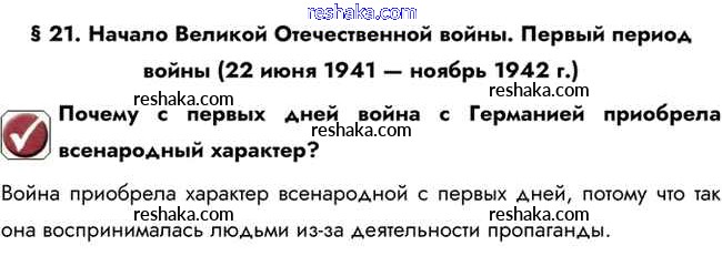 Представляем вам сборники по Истории, с готовыми ответами к Учебнику Горинов школьной программы для учеников десятый класса. Это не просто гдз с ответом, а с подсказками, как верно решить Вопрос в начале параграфа §21. Начало Великой Отечественной войны. Первый период войны (22 июня 1941 — ноябрь 1942 г.) 1. Проверяй домашку с умом и получай высший балл!
