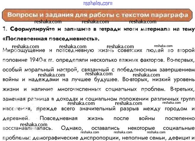 Представляем вам сборники по Истории, с готовыми ответами к Учебнику Горинов школьной программы для учеников десятый класса. Это не просто гдз с ответом, а с подсказками, как верно решить Вопросы и задания для работы с текстом параграфа Послевоенная повседневность 1. Проверяй домашку с умом и получай высший балл!