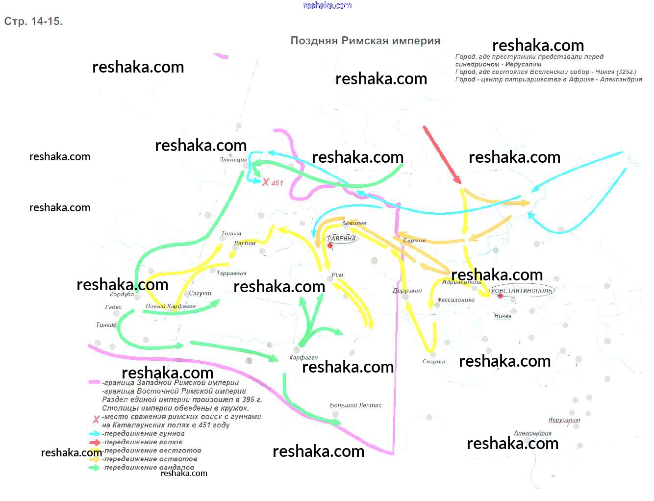 Решака - онлайн ответы История Друбачевская, Уколова за 5 класс Контурные карты ФГОС 2017 - стр.14. Поздняя Римская империя