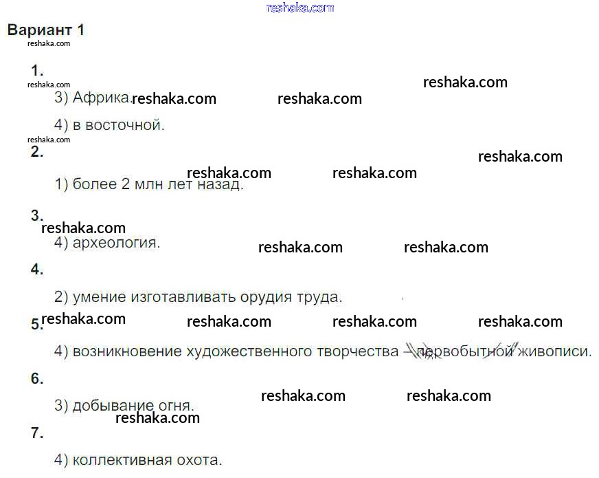 Решака - онлайн ответы История Крючкова за 5 класс Проверочные и контрольные работы ФГОС 2015 - Вариант №1
