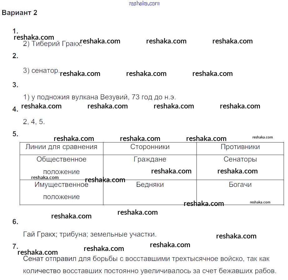 Решака - онлайн ответы История Крючкова за 5 класс Проверочные и контрольные работы ФГОС 2015 - Вариант №2