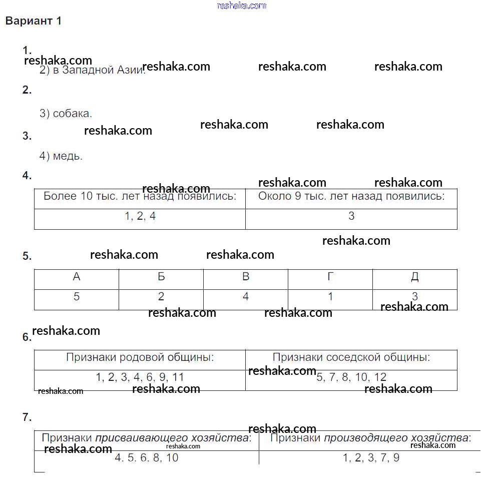 Решака - онлайн ответы История Крючкова за 5 класс Проверочные и контрольные работы ФГОС 2015 - Вариант №1