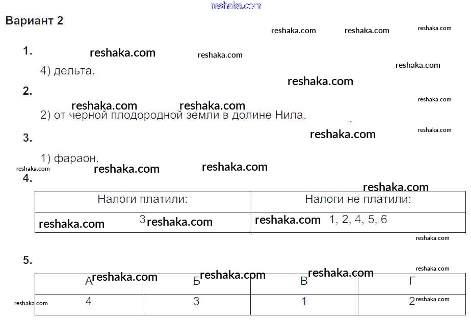 Решака - онлайн ответы История Крючкова за 5 класс Проверочные и контрольные работы ФГОС 2015 - Вариант №2
