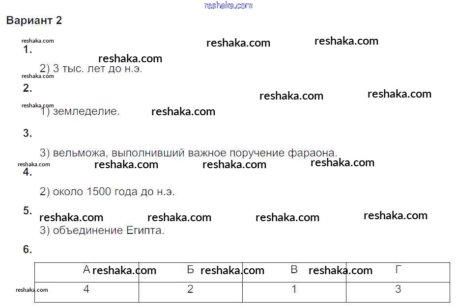 Решака - онлайн ответы История Крючкова за 5 класс Проверочные и контрольные работы ФГОС 2015 - Вариант №2