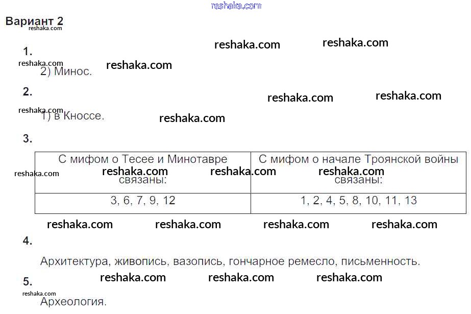 Решака - онлайн ответы История Крючкова за 5 класс Проверочные и контрольные работы ФГОС 2015 - Вариант №2