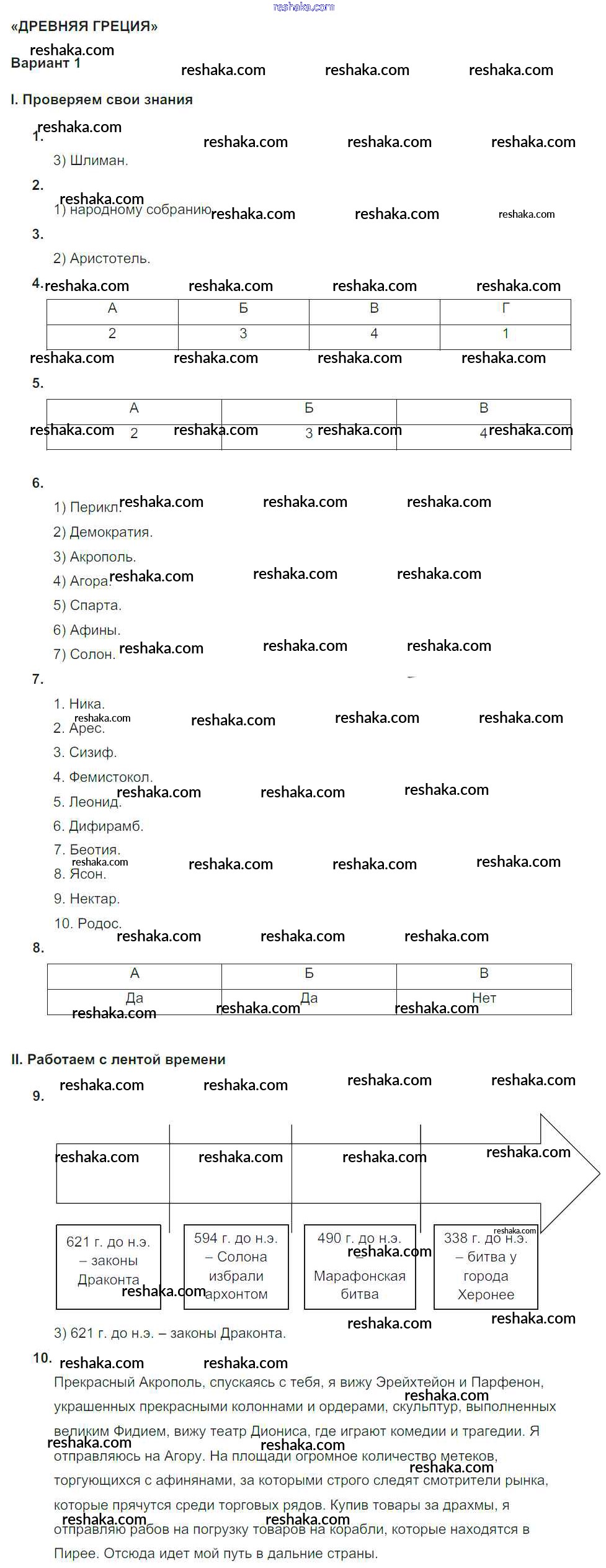 Решака - онлайн ответы История Саплина за 5 класс Тематический контроль ФГОС 2016 - вариант №1