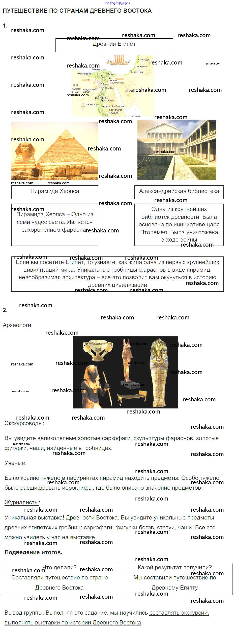 Решака - онлайн ответы История Саплина за 5 класс Тематический контроль ФГОС 2016 - 2. Путешествие по странам Древнего Востока