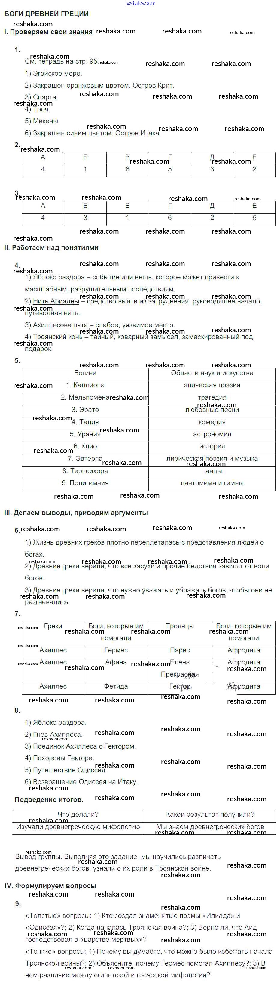 Решака - онлайн ответы История Саплина за 5 класс Тематический контроль ФГОС 2016 - СР №11. Боги Древней Греции
