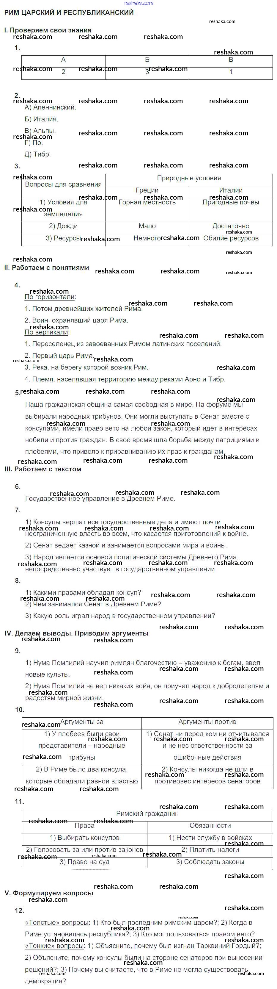 Решака - онлайн ответы История Саплина за 5 класс Тематический контроль ФГОС 2016 - СР №20. Рим царский и республиканский