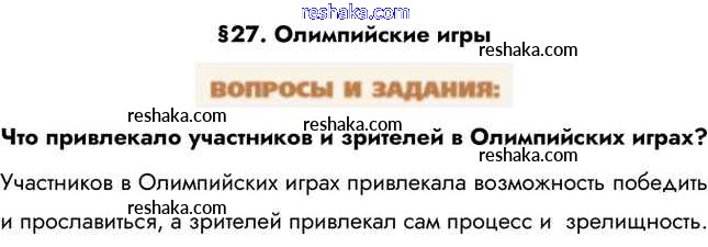 Представляем вам сборники по Истории, с готовыми ответами к Учебнику Уколова школьной программы для учеников пятый класса. Это не просто гдз с ответом, а с подсказками, как верно решить Вопросы и задания §27. Олимпийские игры 1. Проверяй домашку с умом и получай высший балл!