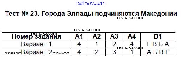 Решака - онлайн ответы История Волкова за 5 класс Контрольно-измерительные материалы (КИМ) ФГОС 2017 - Тест №23. Города Эллады подчиняются Македонии
