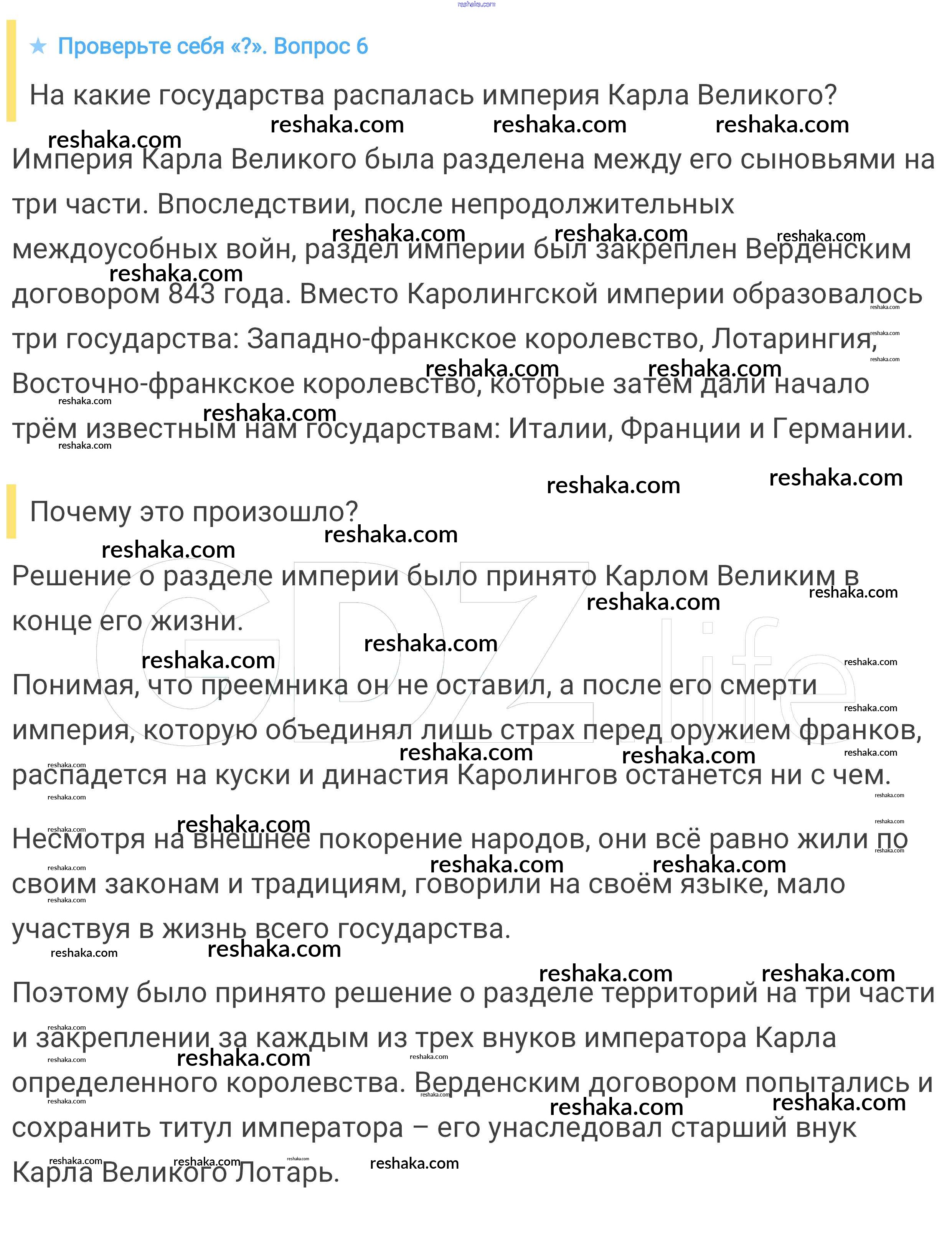 Представляем вам сборники по Истории, с готовыми ответами к Учебнику Агибалова школьной программы для учеников шестой класса. Это не просто гдз с ответом, а с подсказками, как верно решить Проверьте себя § 3. Возникновение и распад империи Карла Великого 6. Проверяй домашку с умом и получай высший балл!