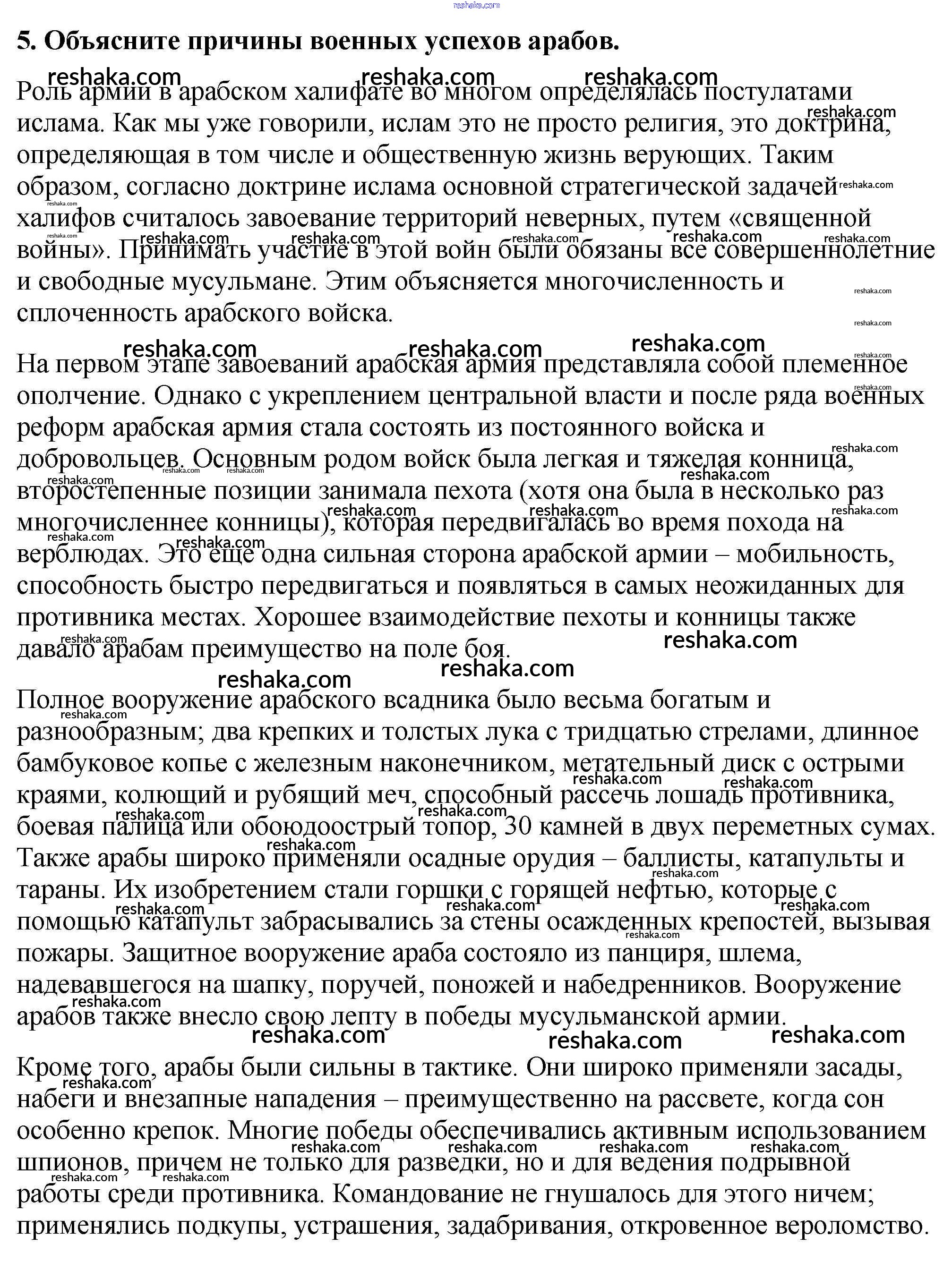 Представляем вам сборники по Истории, с готовыми ответами к Учебнику Агибалова школьной программы для учеников шестой класса. Это не просто гдз с ответом, а с подсказками, как верно решить Проверьте себя § 9. Возникновение ислама. Арабский халифат и его распад 5. Проверяй домашку с умом и получай высший балл!