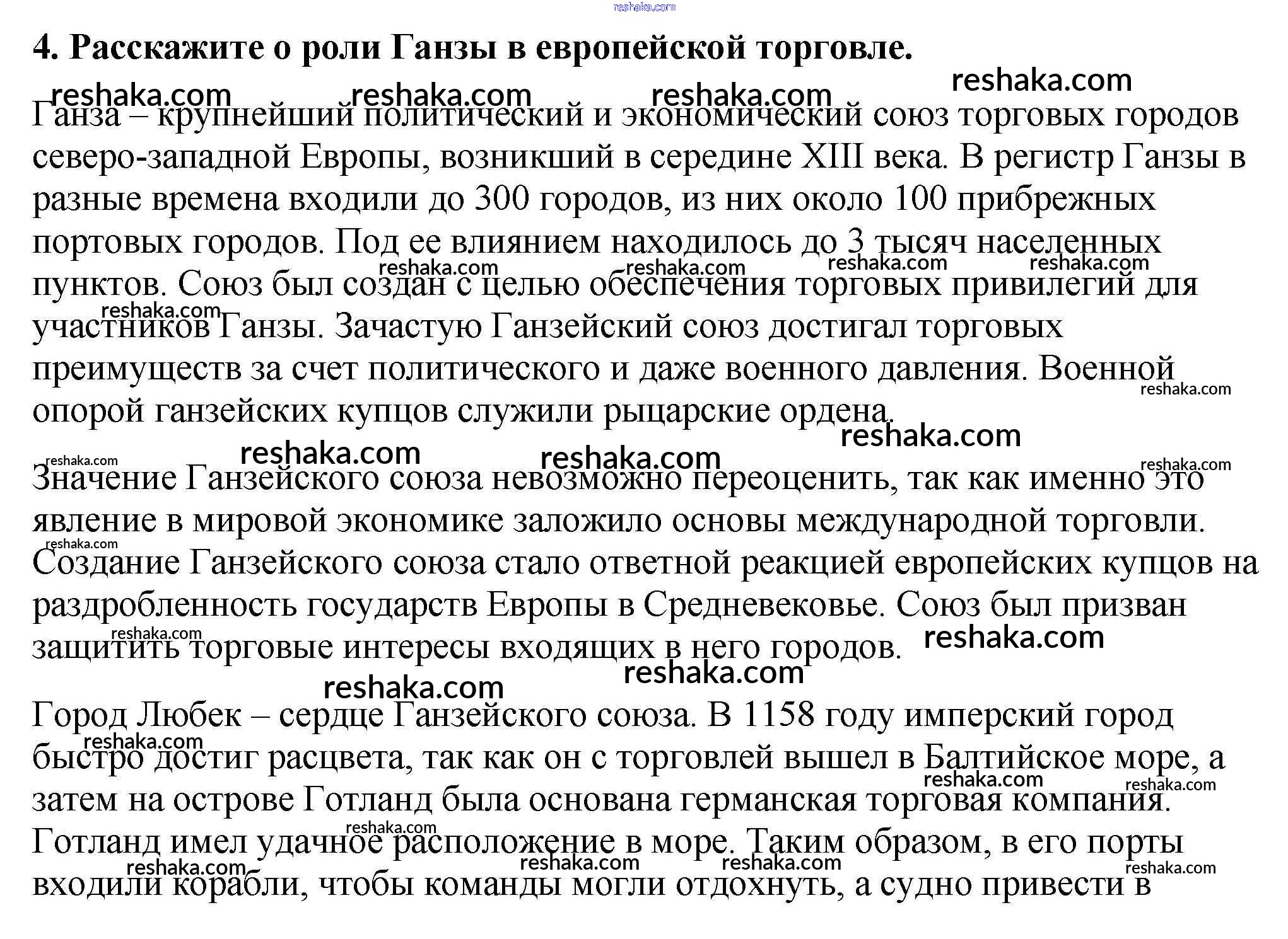 Представляем вам сборники по Истории, с готовыми ответами к Учебнику Агибалова школьной программы для учеников шестой класса. Это не просто гдз с ответом, а с подсказками, как верно решить Проверьте себя § 14. Торговля в Средние века 4. Проверяй домашку с умом и получай высший балл!