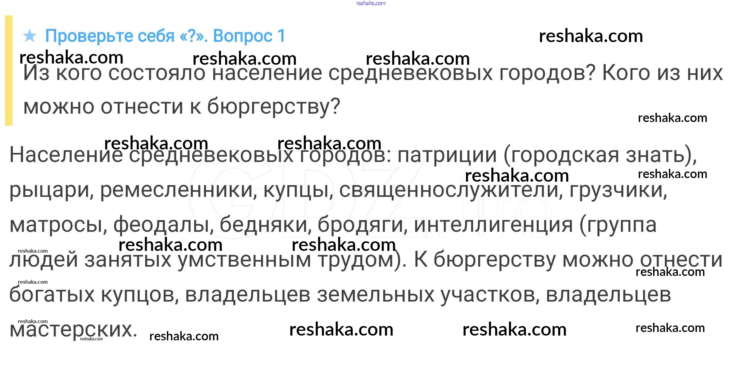Представляем вам сборники по Истории, с готовыми ответами к Учебнику Агибалова школьной программы для учеников шестой класса. Это не просто гдз с ответом, а с подсказками, как верно решить Проверьте себя § 15. Горожане и их образ жизни 1. Проверяй домашку с умом и получай высший балл!