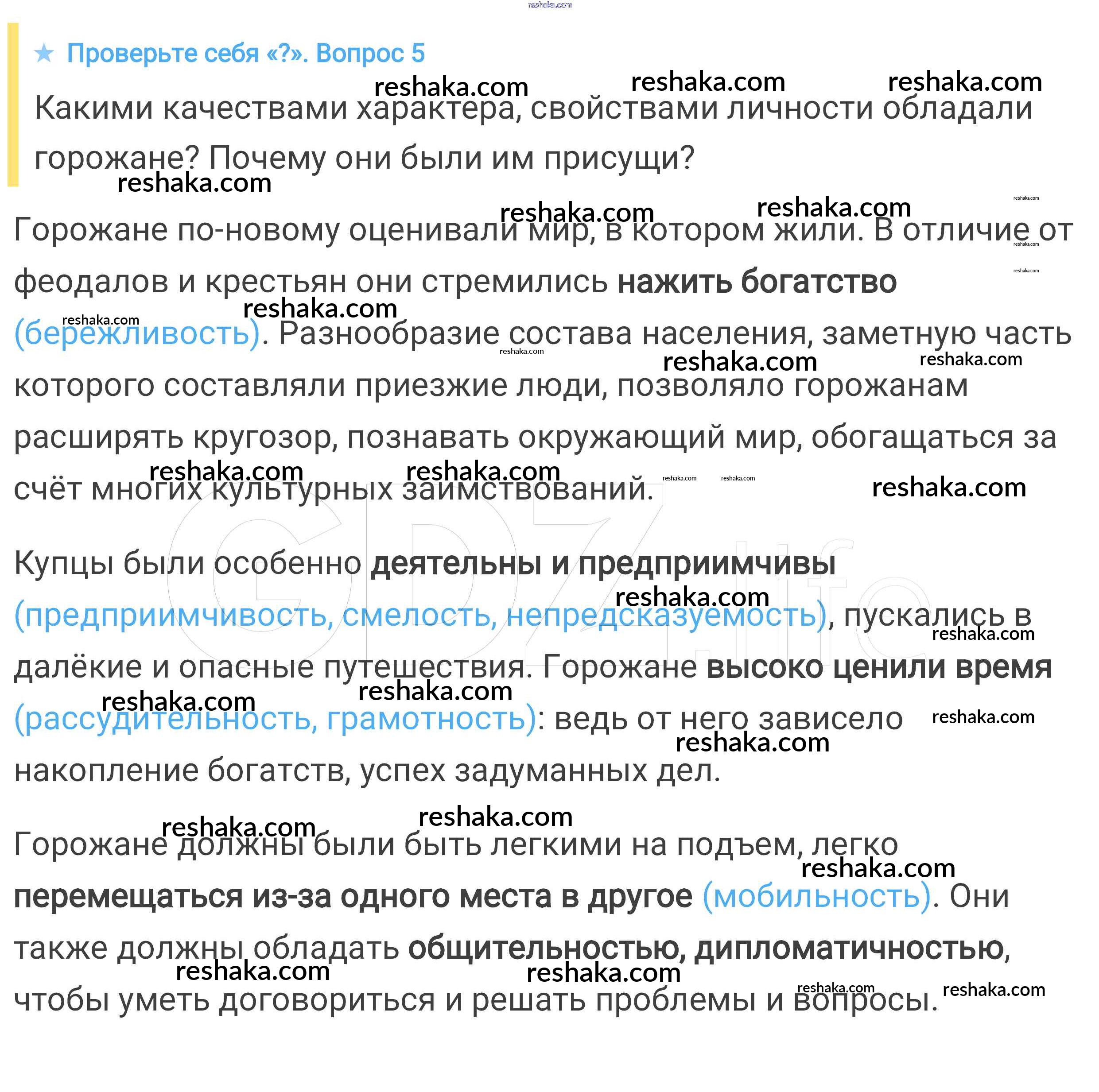 Представляем вам сборники по Истории, с готовыми ответами к Учебнику Агибалова школьной программы для учеников шестой класса. Это не просто гдз с ответом, а с подсказками, как верно решить Проверьте себя § 15. Горожане и их образ жизни 5. Проверяй домашку с умом и получай высший балл!