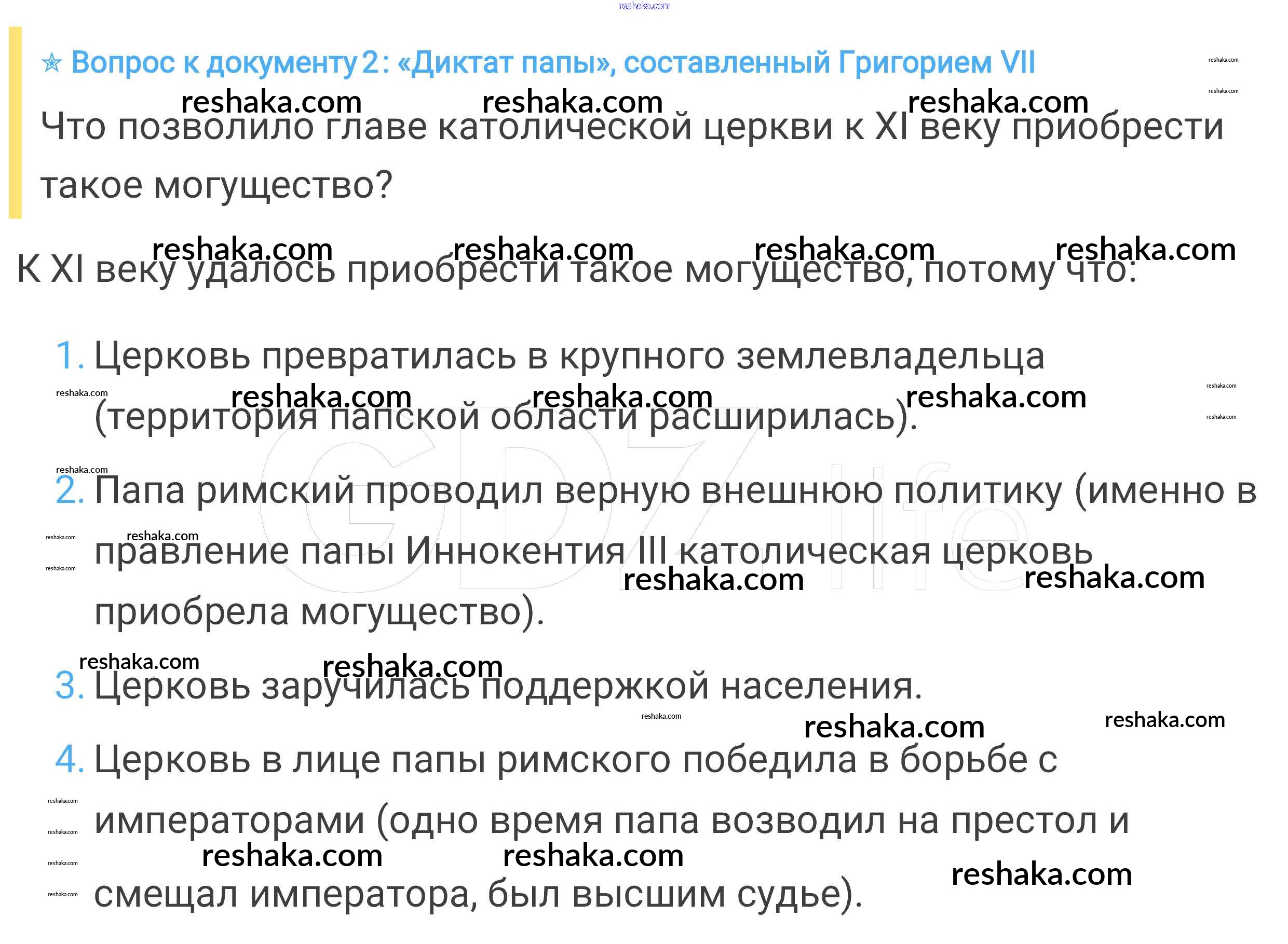 Представляем вам сборники по Истории, с готовыми ответами к Учебнику Агибалова школьной программы для учеников шестой класса. Это не просто гдз с ответом, а с подсказками, как верно решить Вопросы к документу § 16. Могущество папской власти. Католическая церковь и еретики 2. Проверяй домашку с умом и получай высший балл!