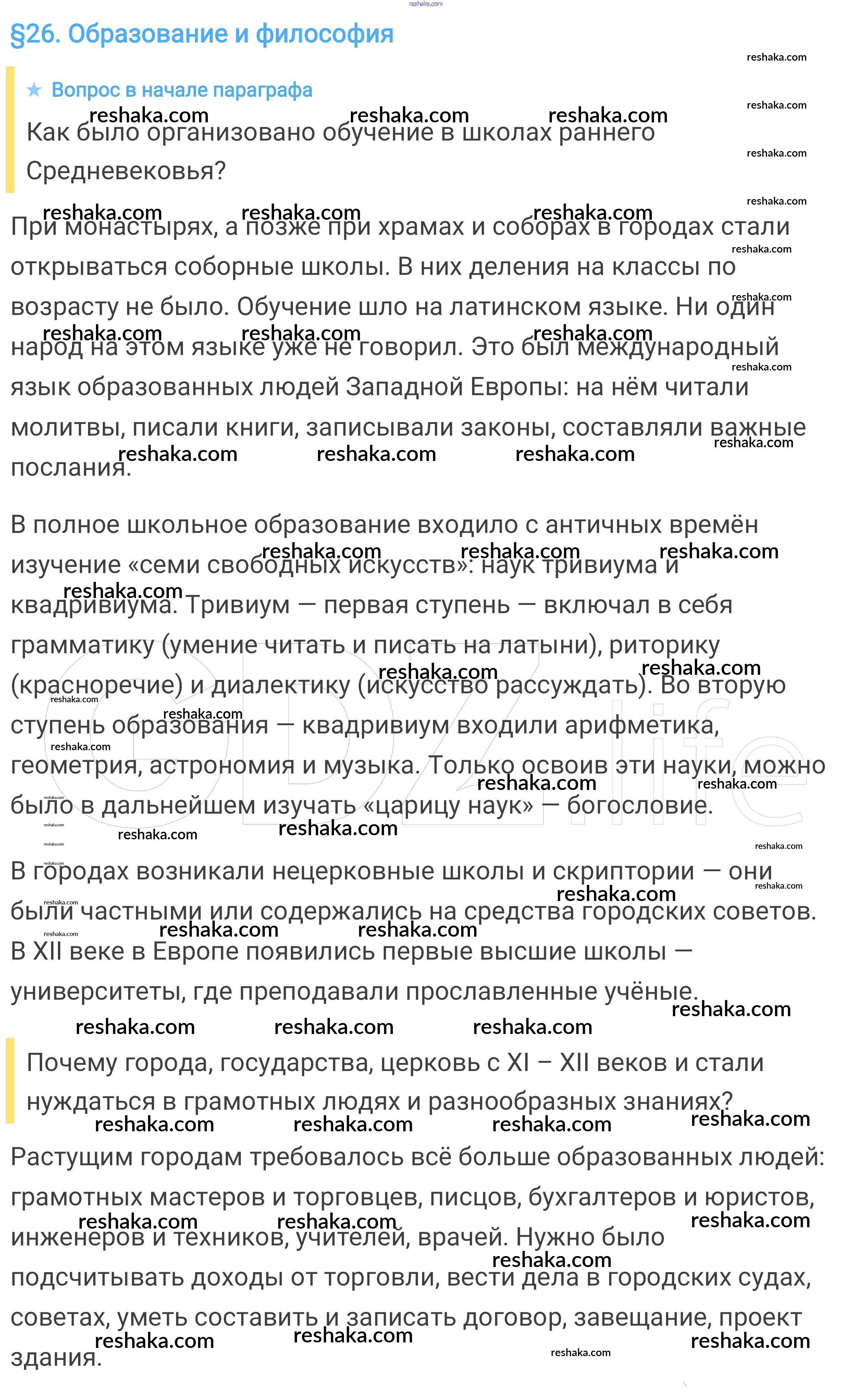 Представляем вам сборники по Истории, с готовыми ответами к Учебнику Агибалова школьной программы для учеников шестой класса. Это не просто гдз с ответом, а с подсказками, как верно решить Вопросы в начале параграфа § 26. Образование и философия 1. Проверяй домашку с умом и получай высший балл!