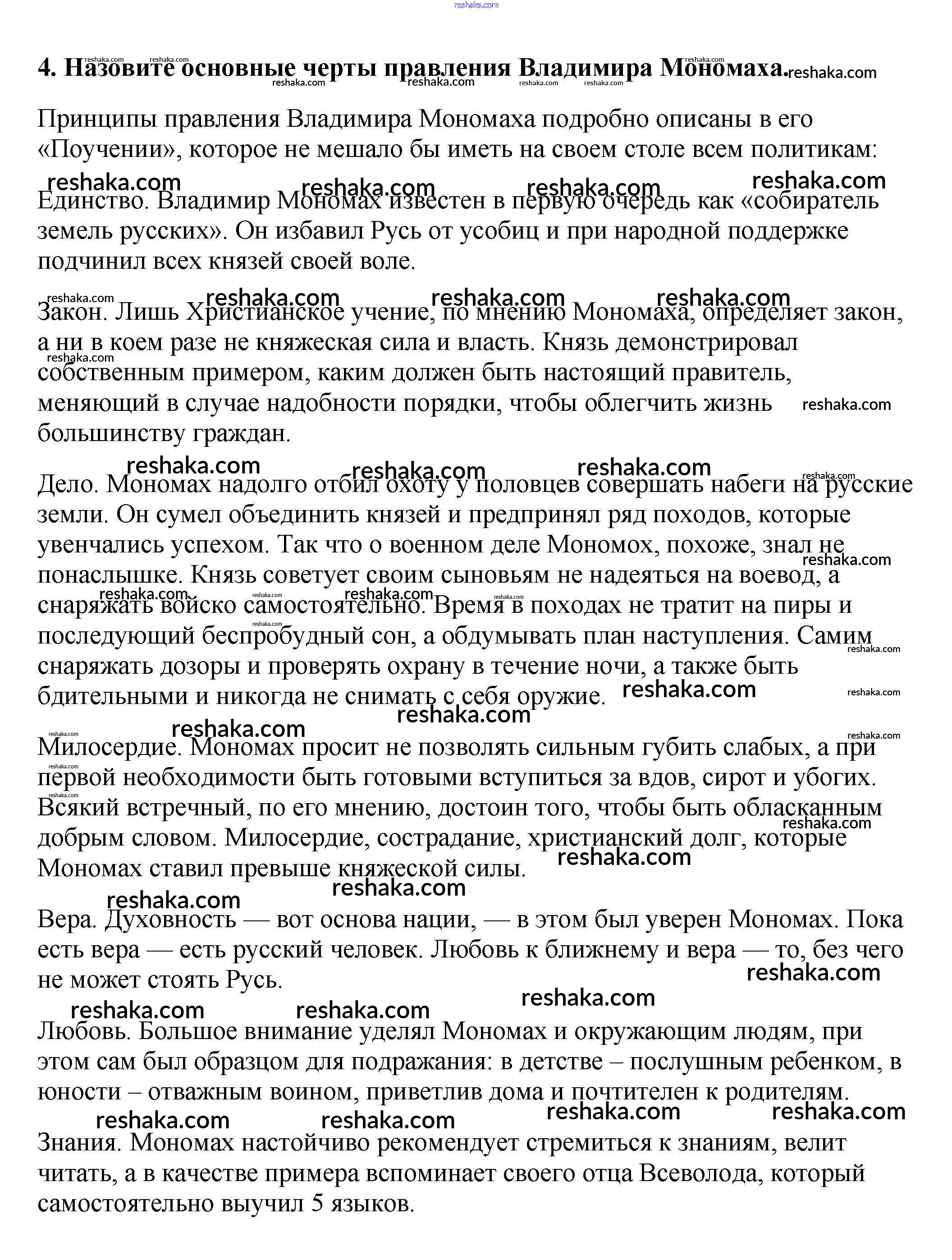 Представляем вам сборники по Истории, с готовыми ответами к Учебнику Арсентьев школьной программы для учеников шестой класса. Это не просто гдз с ответом, а с подсказками, как верно решить Вопросы и задания для работы с текстом §8. Русь при наследниках Ярослава Мудрого. Владимир Мономах 4. Проверяй домашку с умом и получай высший балл!