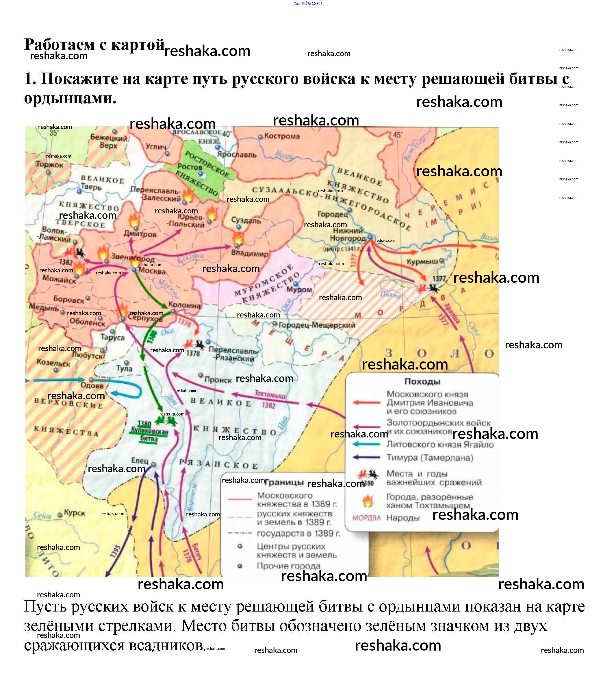 Представляем вам сборники по Истории, с готовыми ответами к Учебнику Арсентьев школьной программы для учеников шестой класса. Это не просто гдз с ответом, а с подсказками, как верно решить Работаем с картой §21. Объединение русских земель вокруг Москвы. Куликовская битва 1. Проверяй домашку с умом и получай высший балл!