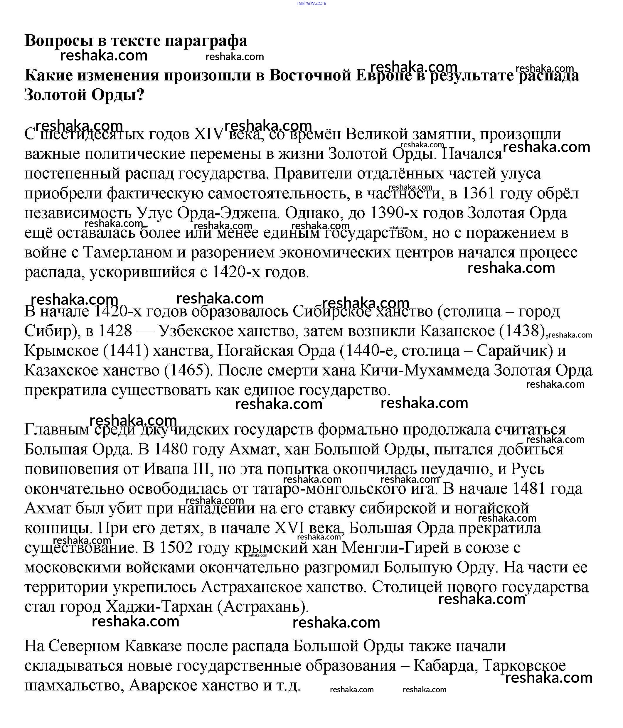 Представляем вам сборники по Истории, с готовыми ответами к Учебнику Арсентьев школьной программы для учеников шестой класса. Это не просто гдз с ответом, а с подсказками, как верно решить Вопросы в тексте §25. Распад Золотой Орды и его последствия 1. Проверяй домашку с умом и получай высший балл!