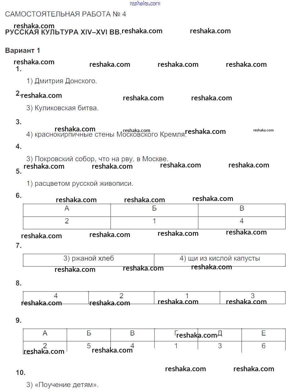 Решака - онлайн ответы История Артасов, Гаврилина за 6 класс Тематический контроль ФГОС 2015 - Вариант-1