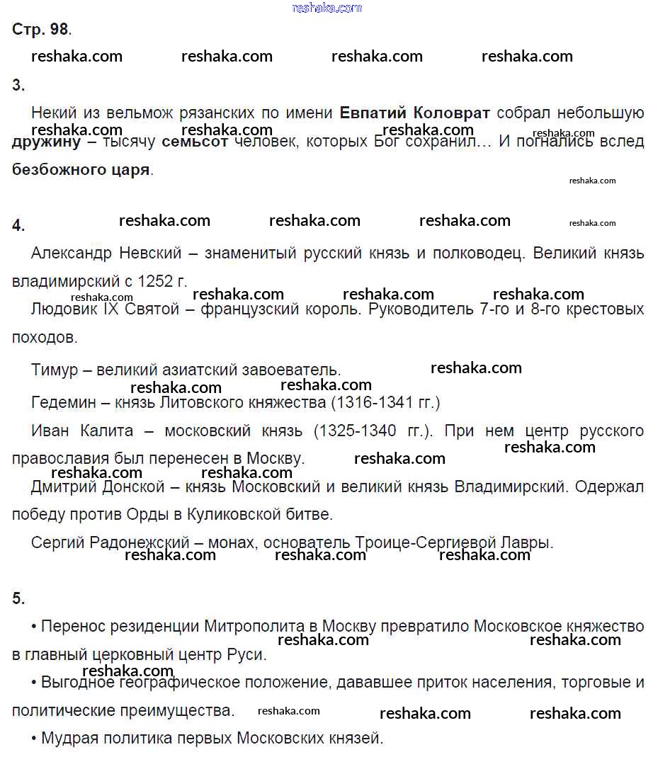 Решака - онлайн ответы История Артасов, Данилов за 6 класс Рабочая тетрадь ФГОС 2016 - стр. 98