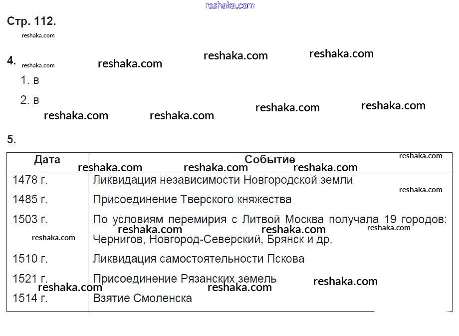 Решака - онлайн ответы История Артасов, Данилов за 6 класс Рабочая тетрадь ФГОС 2016 - стр. 112