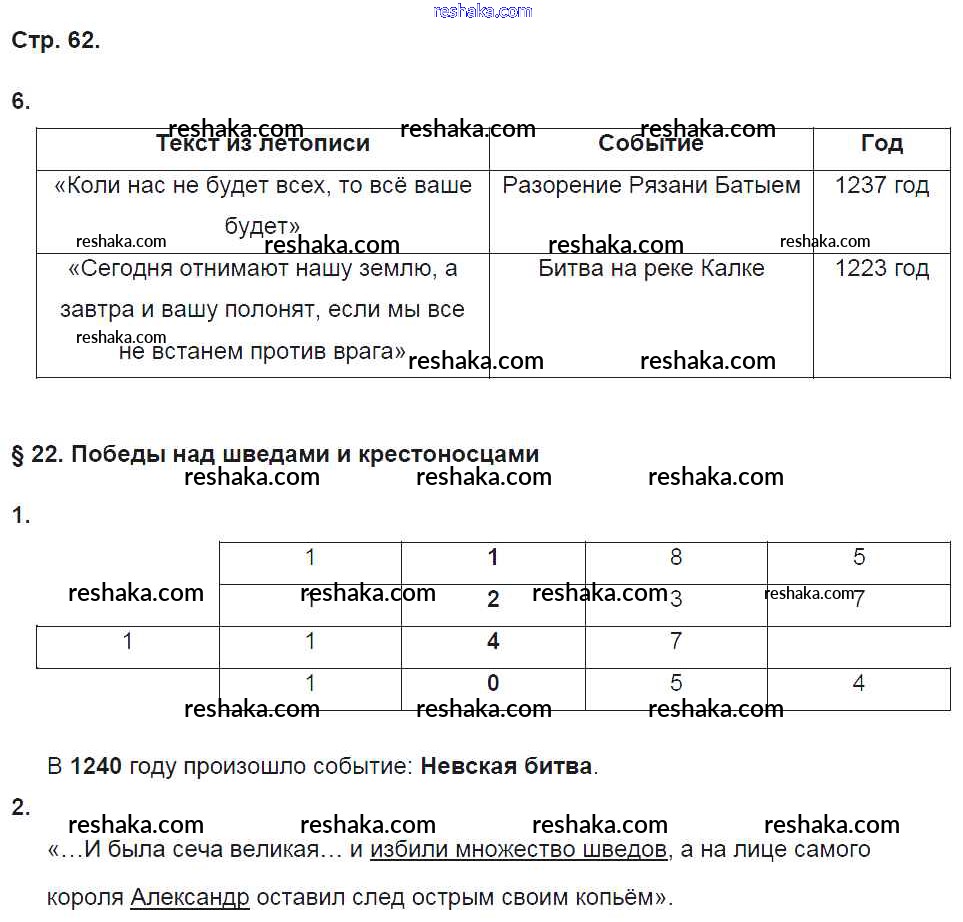 Решака - онлайн ответы История Баранов за 6 класс Рабочая тетрадь ФГОС 2017 - 62