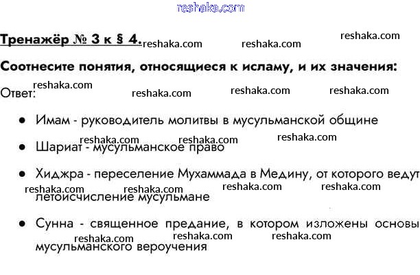 Представляем вам сборники по Истории, с готовыми ответами к Учебнику Бойцов школьной программы для учеников шестой класса. Это не просто гдз с ответом, а с подсказками, как верно решить Тренажёр §4. Возникновение и распространение ислама 3. Проверяй домашку с умом и получай высший балл!