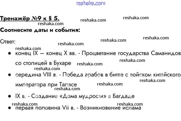 Представляем вам сборники по Истории, с готовыми ответами к Учебнику Бойцов школьной программы для учеников шестой класса. Это не просто гдз с ответом, а с подсказками, как верно решить Тренажёр §5. Мир ислама 9. Проверяй домашку с умом и получай высший балл!