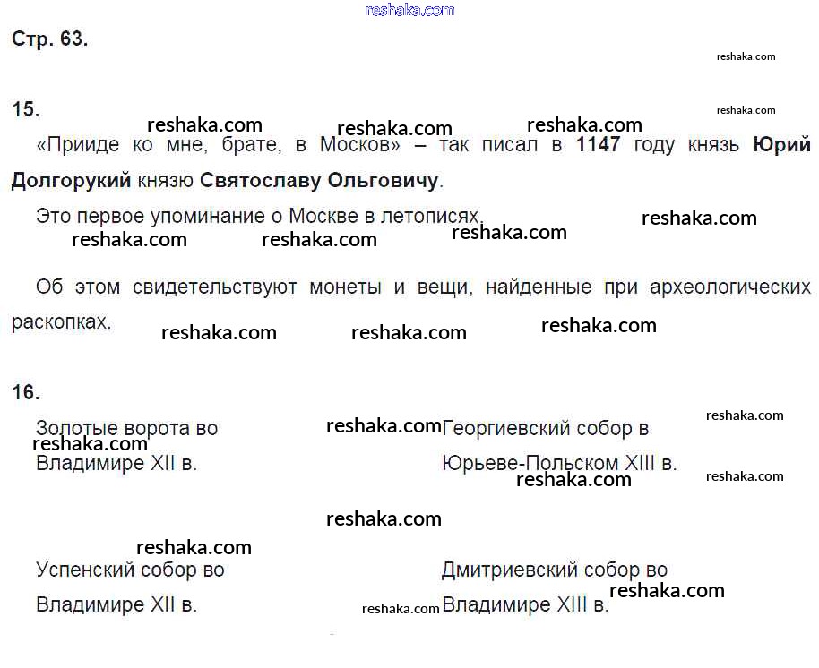 Решака - онлайн ответы История Кочегаров за 6 класс Рабочая тетрадь ФГОС 2017 - стр. 63