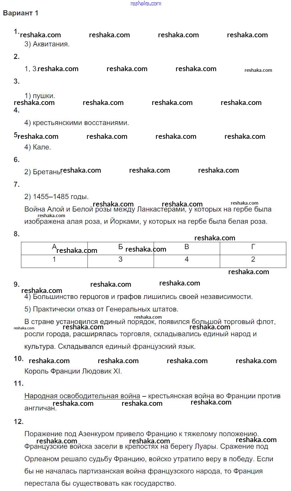 Решака - онлайн ответы История Крючкова за 6 класс Проверочные и контрольные работы ФГОС 2014 - вариант-1