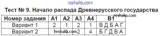 Решака - онлайн ответы История Волкова за 6 класс Контрольно-измерительные материалы (КИМ) ФГОС 2017 - Тест №9. Начало распада Древнерусского государства