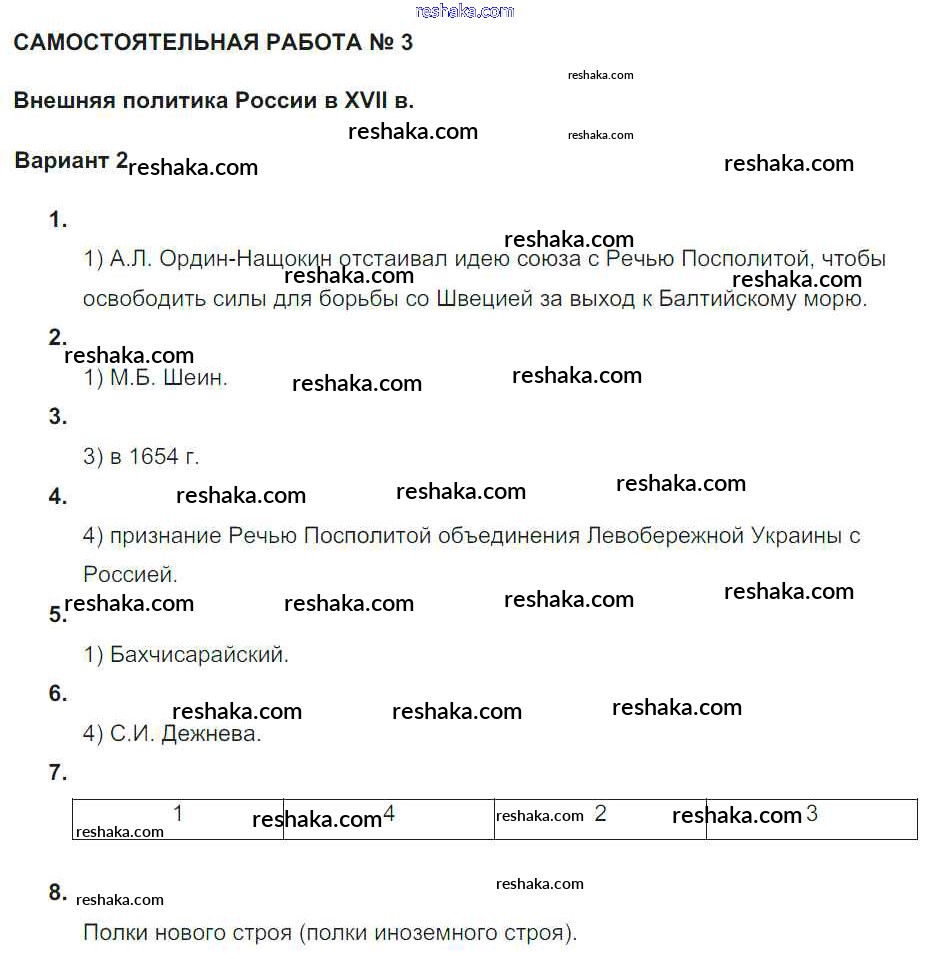 Представляем вам сборники по Истории, с готовыми ответами к Рабочей тетради Акиньшина школьной программы для учеников седьмой класса. Это не просто гдз с ответом, а с подсказками, как верно решить СР-3. Внешняя политика России в XVII веке Россия в XVII веке Вариант 2. Проверяй домашку с умом и получай высший балл!