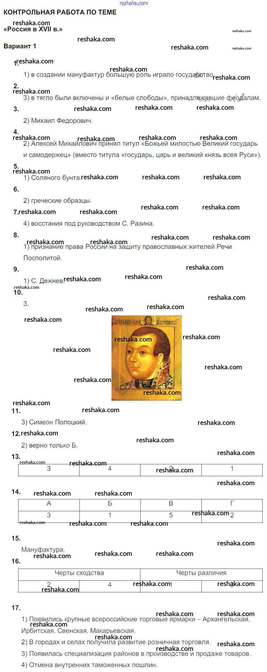 Россия в XVII веке / кр. Россия в XVII веке / вариант 1
