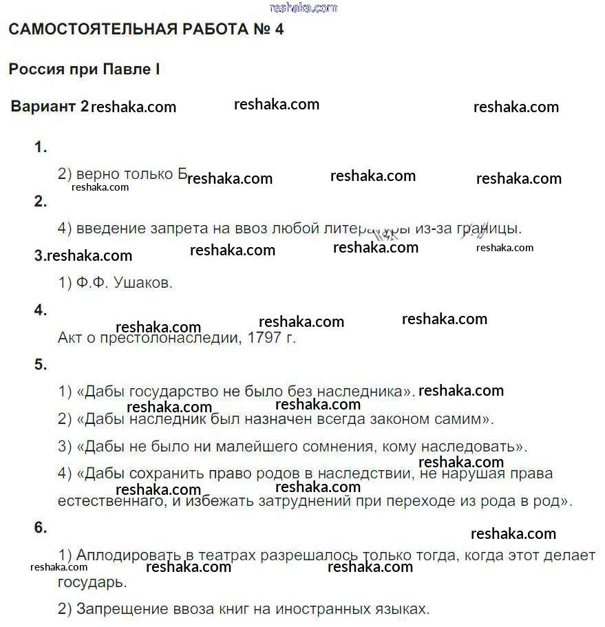 Российская империя в 1762-1801 гг / ср-4 / вариант 2