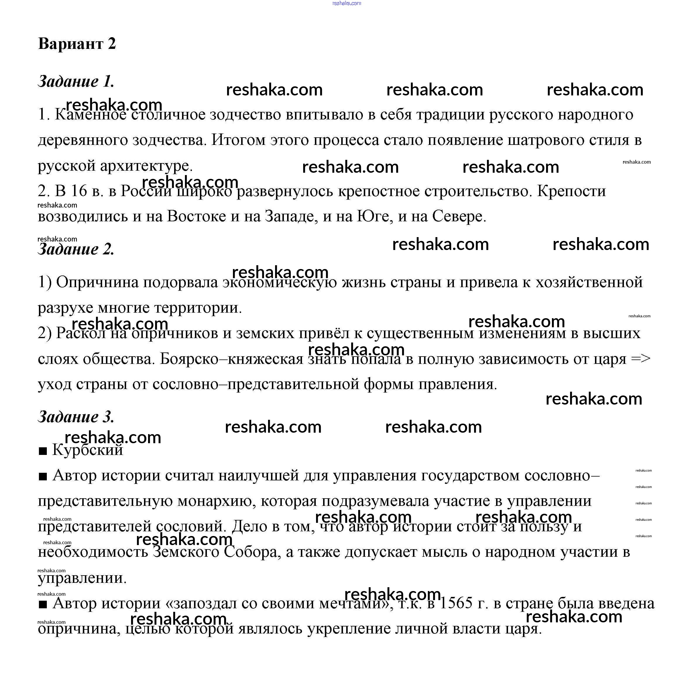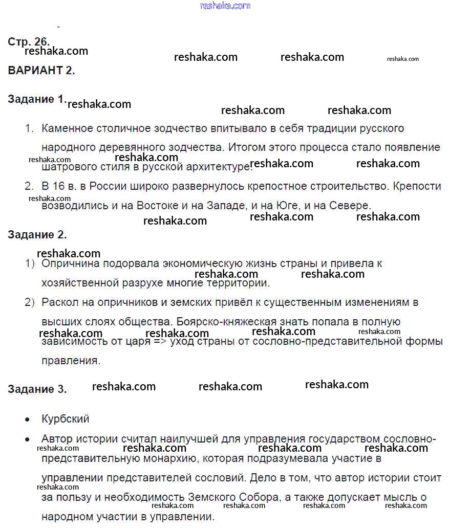 Решака - онлайн ответы История Артасов за 7 класс Контрольные работы ФГОС 2016 - 26