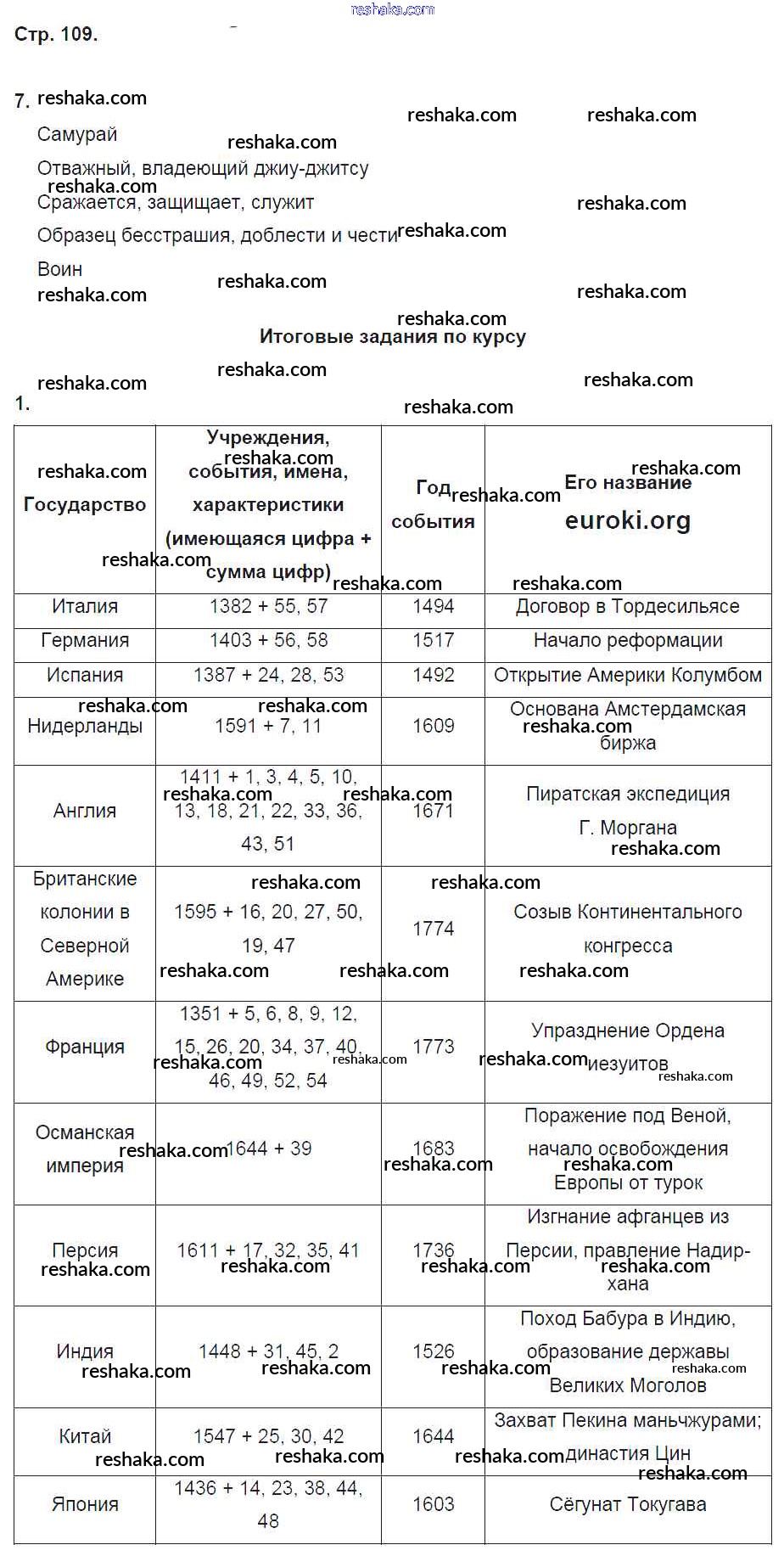 Решака - онлайн ответы История Баранов за 7 класс Рабочая тетрадь ФГОС 2015 - 109