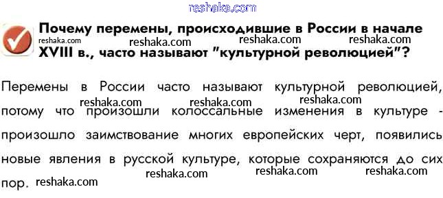 Представляем вам сборники по Истории, с готовыми ответами к Учебнику Арсентьев школьной программы для учеников восьмой класса. Это не просто гдз с ответом, а с подсказками, как верно решить Вопросы в начале параграфа §10. Перемены в культуре России в годы Петровских реформ 1. Проверяй домашку с умом и получай высший балл!