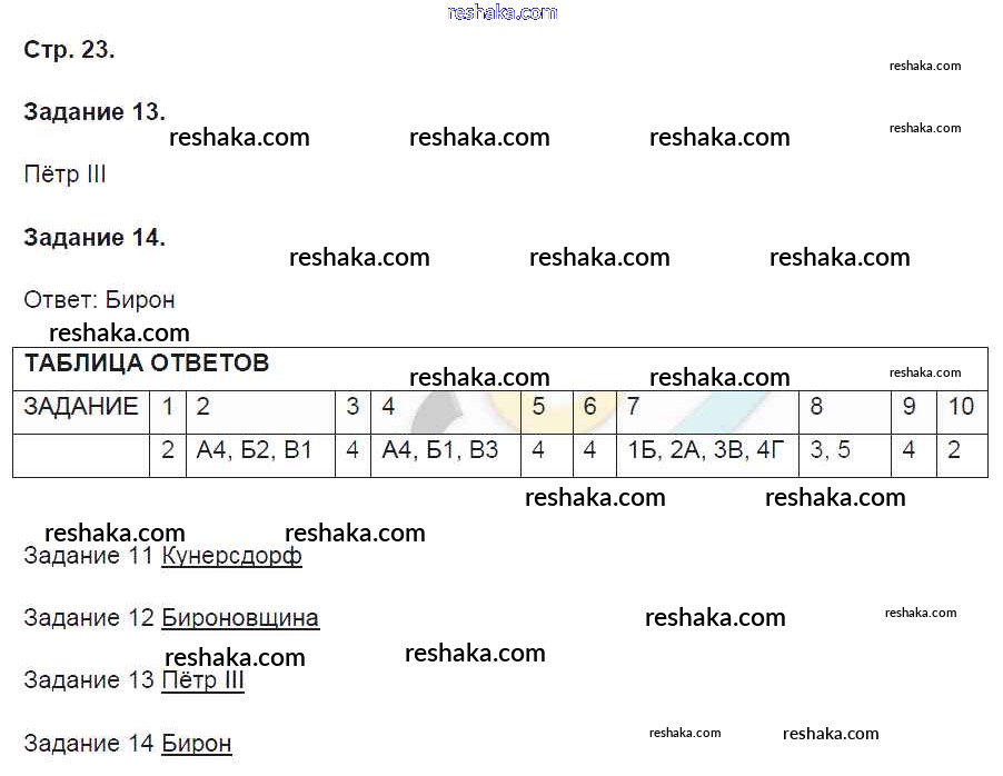 Решака - онлайн ответы История Артасов за 8 класс Контрольные работы ФГОС 2016 - 23