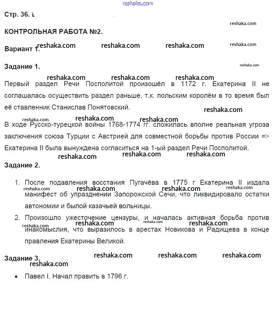 Решака - онлайн ответы История Артасов за 8 класс Контрольные работы ФГОС 2016 - 36