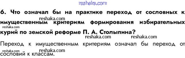 Представляем вам сборники по Истории, с готовыми ответами к Учебнику Арсентьев школьной программы для учеников девятый класса. Это не просто гдз с ответом, а с подсказками, как верно решить Вопросы и задания § 31. Социально-экономические реформы П. А. Столыпина 6. Проверяй домашку с умом и получай высший балл!