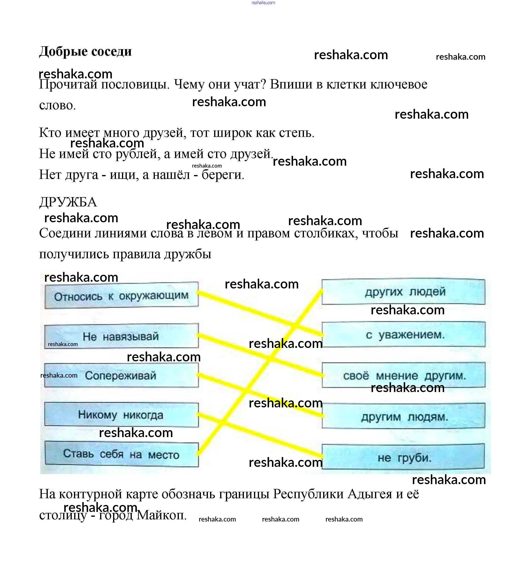 Решака - онлайн ответы Кубановедение Науменко за 3 класс Рабочая тетрадь ФГОС 2017 - Добрые соседи