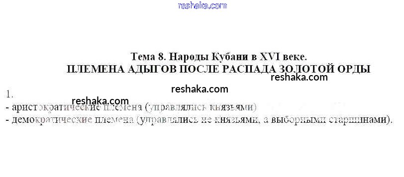 Решака - онлайн ответы Кубановедение Близнюк за 6 класс Рабочая тетрадь 2019 - 1