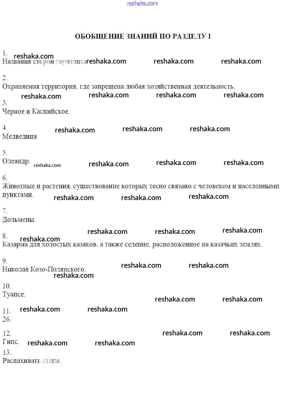 Решака - онлайн ответы Кубановедение Близнюк за 6 класс Рабочая тетрадь 2019 - Раздел 1