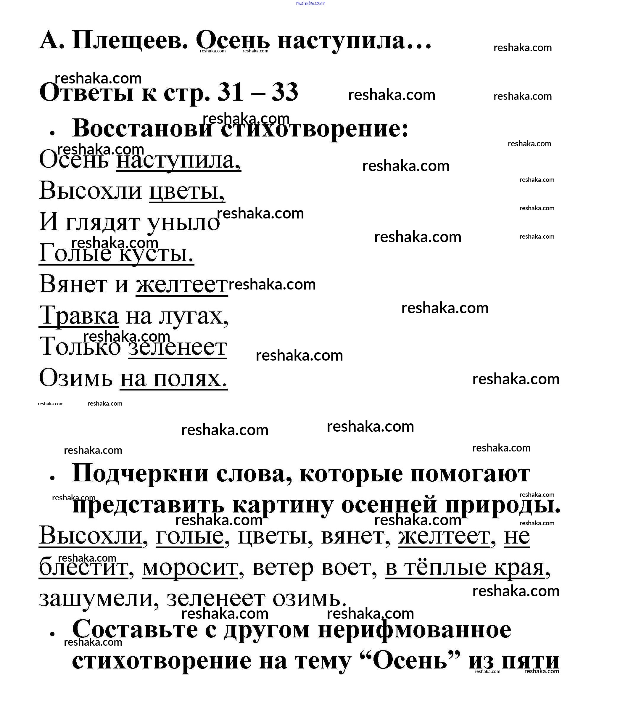 Решака - онлайн ответы Литература Бойкина, Виноградская за 2 класс Рабочая тетрадь ФГОС 2018 - 31