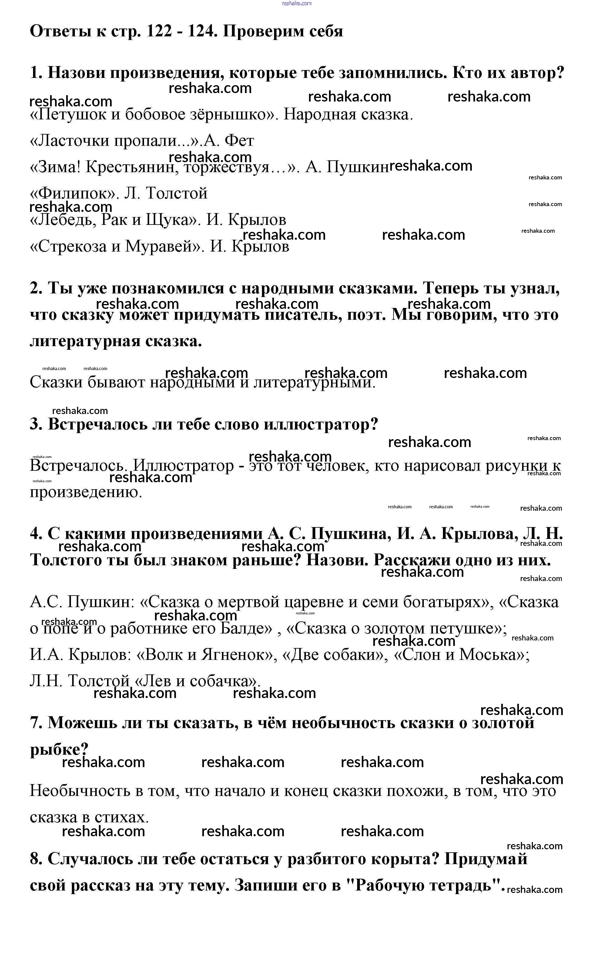 Решака - онлайн ответы Литература Климанова, Горецкий за 2 класс Учебник ФГОС 2018 - 122-124